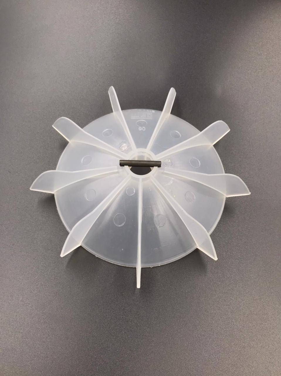 El aspa WEG original, su objetivo es colaborar en la reducción o disipar la t° del equipo debido a la transferencia de calor desde el motor al que está montado y debido al calentamiento por fricción.