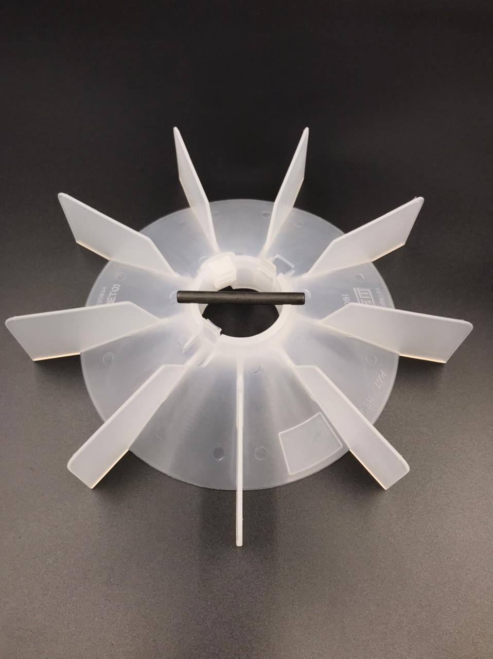 El aspa WEG original, su objetivo es colaborar en la reducción o disipar la t° del equipo debido a la transferencia de calor desde el motor al que está montado y debido al calentamiento por fricción.